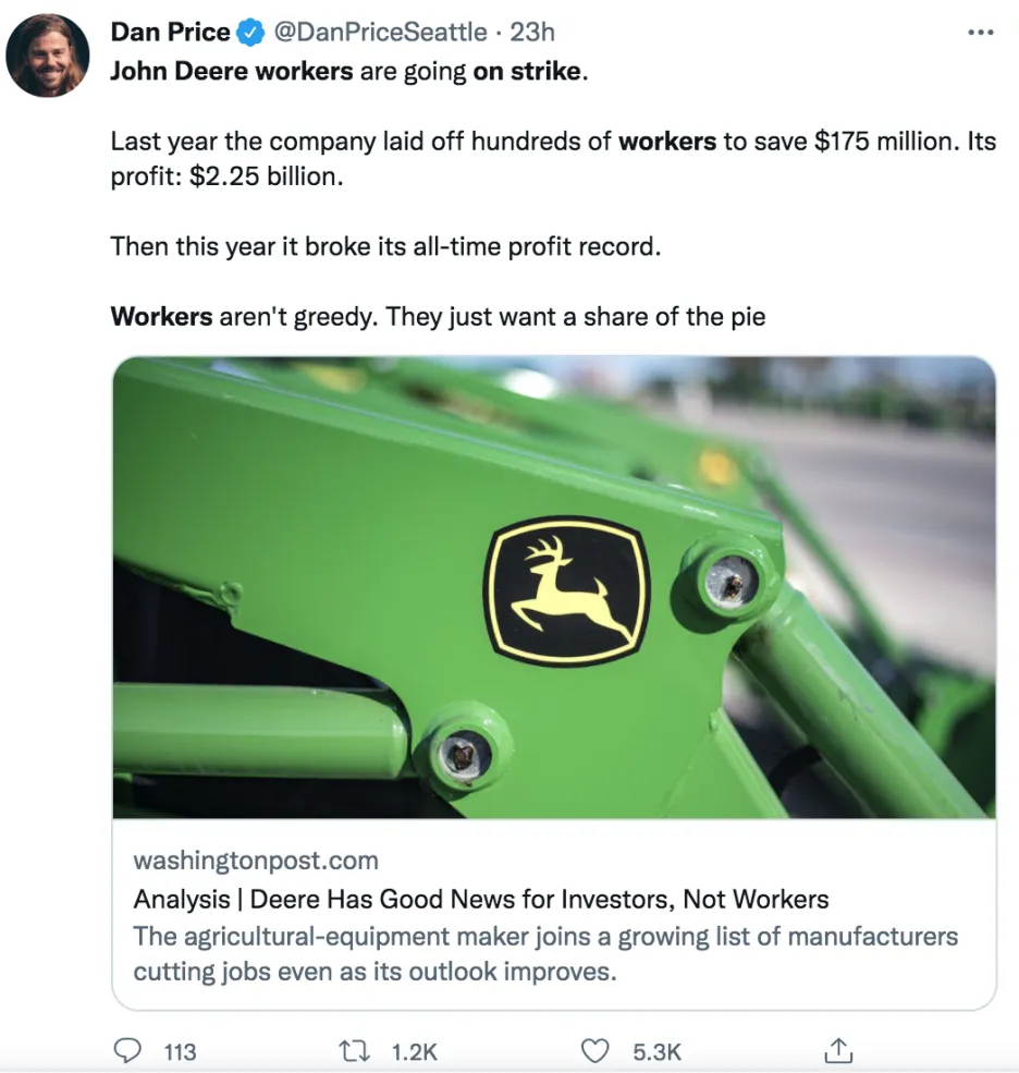 約翰迪爾上萬名工人罷工,他們並不是貪婪
