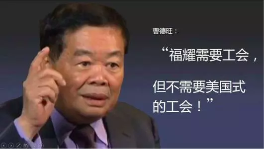 曹德旺:工廠能沒有工會,還是不要成立工會。因為一旦工廠有了工會之後,工廠就要用時間成本、法律成本來陪著它,一件事情我們都不能做主,都要通過工會!