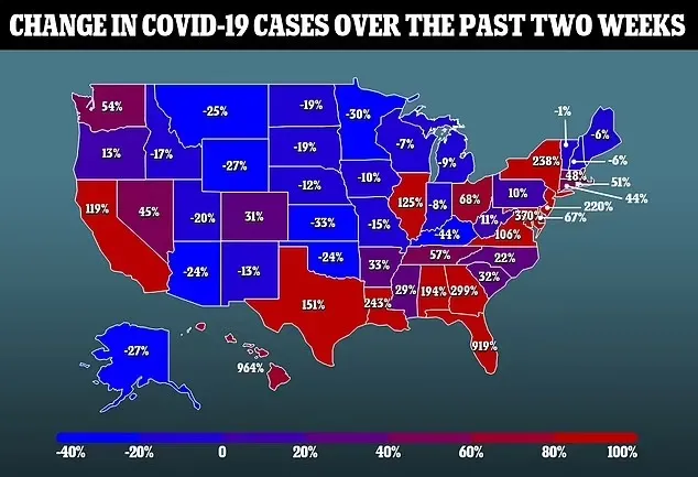 其中路易斯安那州、新澤西州和佛羅里達州住院人數在兩周內增加了近60%,本月早些時候,密歇根州、佛蒙特州、緬因州和新罕布希爾州的住院人數都創下了歷史新高。
