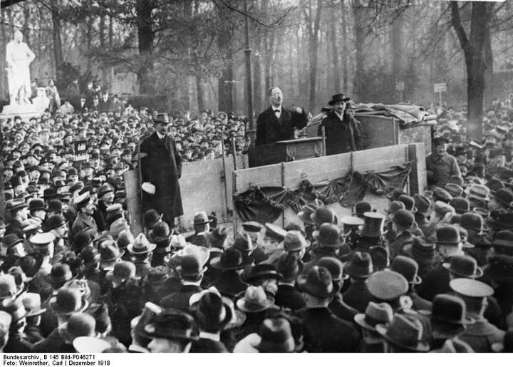 出獄后,他立刻組織了聲勢浩大的反戰運動,在他的策劃和影響之下,10月25日,德國公海艦隊的八萬名水兵,拒絕出戰,11月3日,直接爆發了起義。