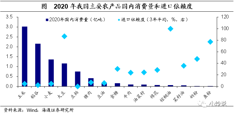 在糧食類別上,我國的水稻、大麥、小麥能夠做到較好的自給自足,對外依存度不足5%,主要問題是大豆。