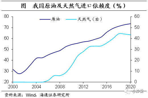 在能源產品上,最重要的石油,2020年的對外依存度是73.6%,天然氣對外依存度也達到了43.5%。