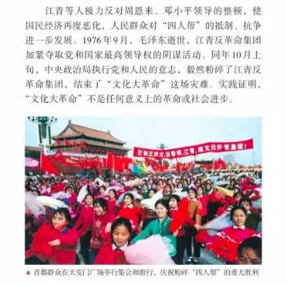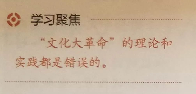 但前兩年,高中歷史課本里突然將「『文化大革命』是一場由領導者錯誤發動,被反革命集團利用,給黨、國家和各族人民帶來嚴重災難的內亂」這句話突然去掉了。