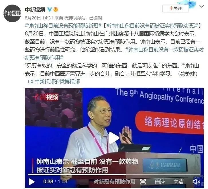 鍾南山,解放軍日報也強調了,新冠沒有預防葯。