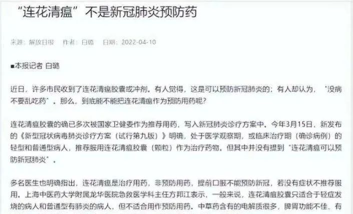 這次疫情尤為突出,在各種官方的居家指南裡面,都有連花清瘟的身影,我在這裡想認真的問編寫指南的人,你們到底是以什麼為依據,把一個15天研發出來的連花清瘟設置在裡面?有沒有利益輸送?