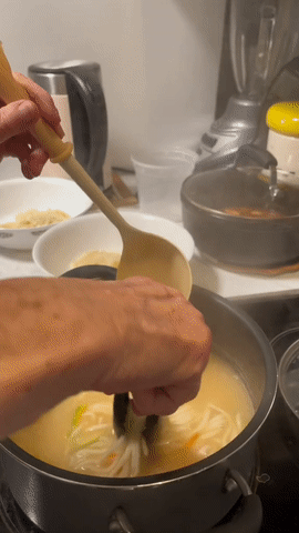 從賣相上來看,很難猜到這樣一碗豐盛熱湯麵,靈魂原料竟然是Costco五刀一隻的烤雞,還是剩下的