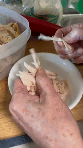 如果還剩一些雞肉,撕碎以後加調味料拌拌,佐以蔥絲和白芝麻,5分鐘搞定一道