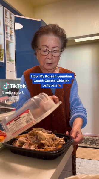 最近,有位韓國奶奶因為把Costco $4.99一隻的烤雞,做成了各種看上去就很好吃的美味,在TikTok上爆紅。