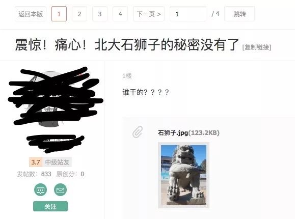 人們對兇手的作案毫無察覺,只知道第二天一早,給前來燕園遊玩的各路女孩介紹過一百次「圖書館的石獅子有鳥」的北大男生髮現:這座學校最大的談資失蹤了。很快,石獅子失守的帖子成為了未名BBS十大熱門話題的第一名。