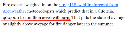 預計,今年加州可能將有40萬至100萬英畝土地被燒毀。這將使該州在夏末的火災危險程度處於平均水平或略高於平均水平。