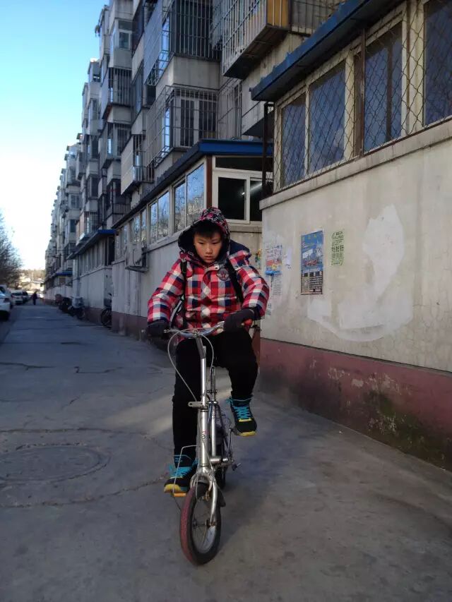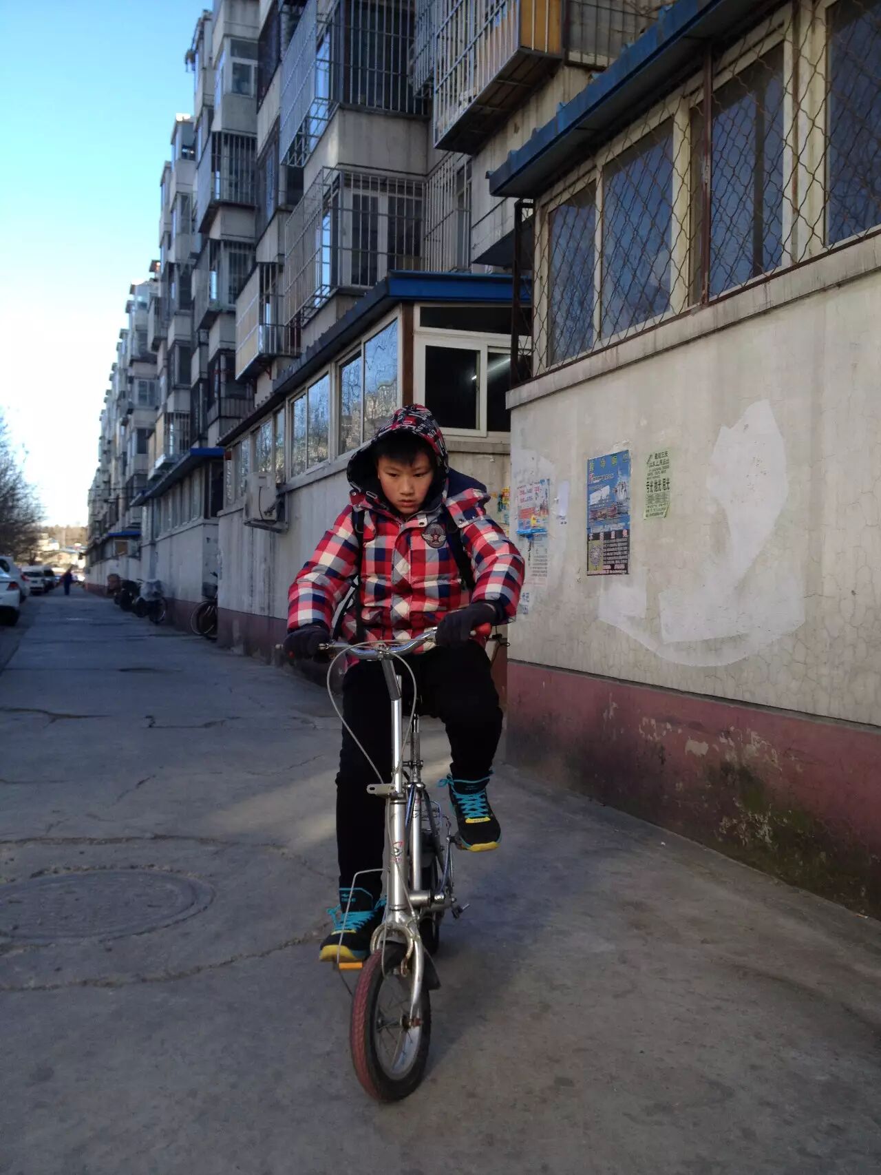 看到自行車,竟然告訴我不太會騎。下午游泳時,決定騎車去,誰知他不是不會騎,而是不敢蹬車,生怕速度快了摔下來,眼睛不離開前車輪。只能讓他自己在院里自己練習,我在旁邊當教練,隨時提醒他:不要往下看,看遠處我的手,呵呵,越是害怕,越是騎不好。