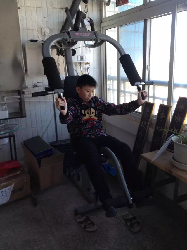 我教他用智腦學習機來打字,又是好奇喲,這也能打出字來,,,接著,讓他背誦字根表,我先去睡會兒覺,哈哈,他在健身器上一邊鍛煉一邊熟讀呢,夠認真 吧,,,