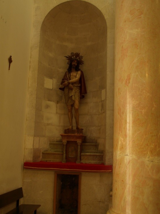 教堂一進門,迎面就是負架的主的雕像。