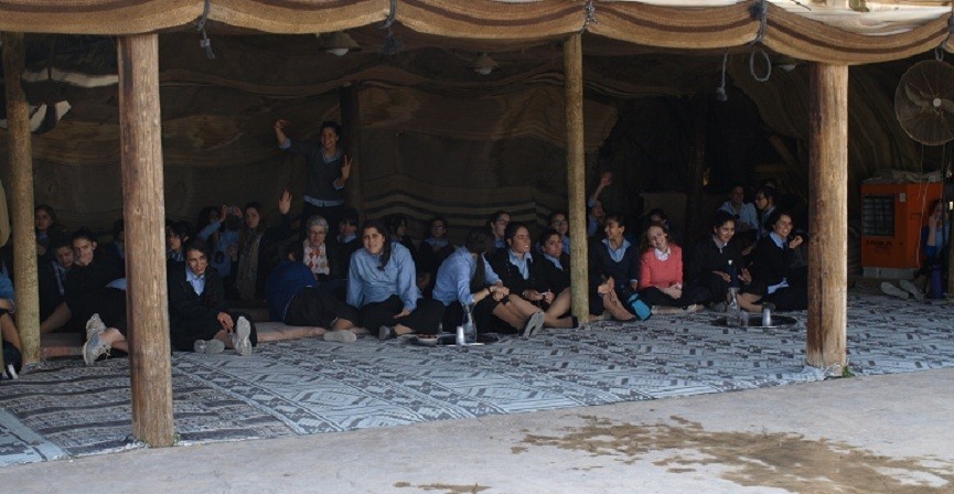 這是一個碩大的帳篷,和蒙古包不同,它是長方的。後來在約旦看到「真的」貝督音人的帳篷,雖小了很多,也是長方的。