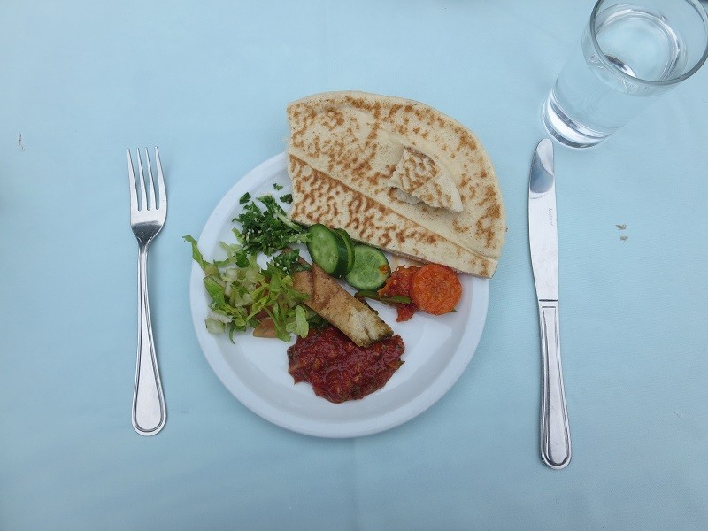 這裡的主菜就是彼得魚,所謂彼得魚就是加利利湖裡的魚,撈出來直接烤,然後上桌,原汁原味。
