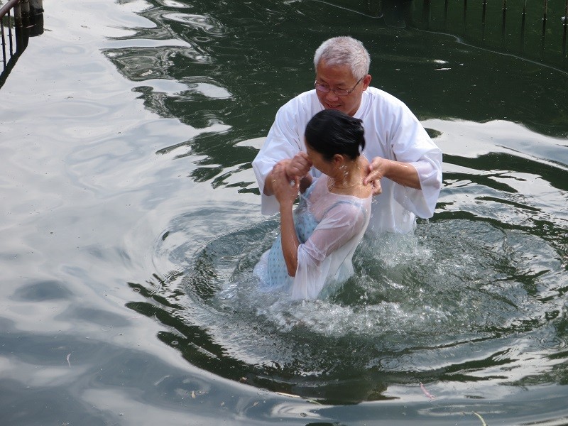浸禮,要完全的沒入水中,象徵著歸入主耶穌的死。