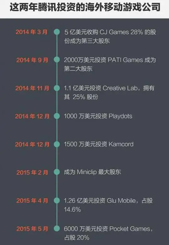 騰訊2015年收購美國遊戲公司拳頭公司(Riot Games),2016年再以86億美元收購芬蘭遊戲公司Supercell. 騰訊近兩年在遊戲方面的投入顯示了這個行業的誘人之處已讓資本大鱷們心動不已。