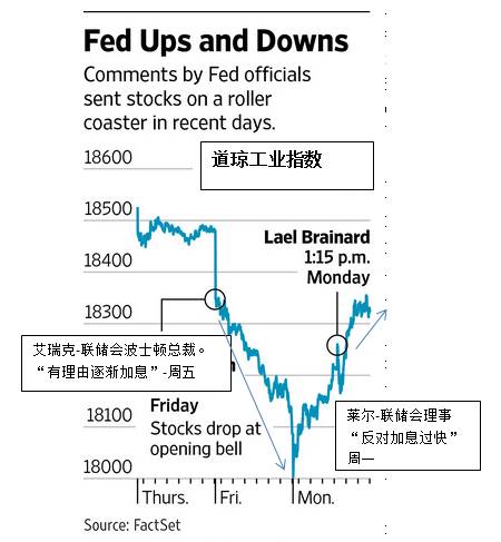 市場討厭不確定因素,聯儲會每隔6周關於升息與否的討論都會讓市場鬧心不已。這種含混不清的風格與格林斯潘時代有很大不同,格老評論他自己的發言是「如果你認為聽明白了,那你肯定聽錯了。」但那時金融調控工具眾多,格老呼風喚雨,縱然嘴上沒準兒,倒也自成一派。今天不同了,利息近於零,耶倫也已肯定負利率不會考慮,所以能打的牌幾乎已出盡。目前任何有關利息的臆測都讓市場晃動不已,兩位意見相左的聯儲會高層4天內相反的說法讓道瓊斯上下飛舞了300多點(圖一)。唯一能確認的是,在這個央行人工造就的市場環境里,無論哪種交易策略,都顯得脆弱不堪(圖2恐慌指數)。