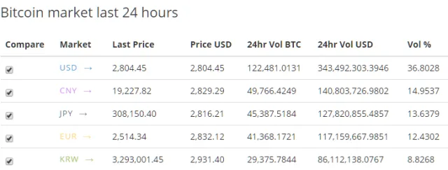 比特幣漲瘋了,中國的平台在被禁之前佔了70%以上的比特幣交易量。現在交易量已從最開始國家嚴控的萎縮中穩定下來。目前世界的5大炒家分別是美國,中國,日本,歐洲和韓國。如果中國持續對比特幣鬆綁,人民幣比特幣的交易量還會繼續攀升,以目前中日韓的市場份額展望,比特幣已提前進入了亞洲世紀(圖1)。其中韓國和美國的交易價格差有1000美元,中美也有最多將近20%的差價。雖然韓國有嚴格的外國人開戶,洗錢規定,但只要有機可乘,中國和韓國的比特幣套利交易就會存在。