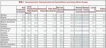 表格二 Socioeconomic Characteristics by Racial/Ethnic and Asian Ethnic Groups