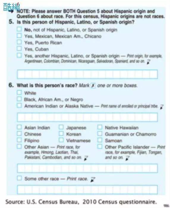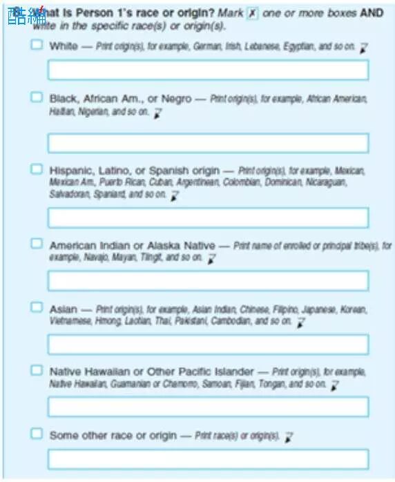 第三種質問是「記錄這信息是打算有朝一日對我們搞種族滅絕」。應該說,前有排華法案、現有Steve Bannon這白人種族主義者坐鎮白宮的背景下,此類擔心不能說全無根據。儘管上一次「亞裔細分」行動是二戰時把華裔和被遣送的日裔分開。但這種風險還是和州機構是否詢問細分信息無關。首先,在民間普遍持槍而且民兵傳統深厚的美國,能有暴力資源搞起種族滅絕的只有聯邦政府,州政府完全沒這實力。而聯邦政府的普查數據早已有拉丁裔和亞裔的細分(圖三),2020普查問卷的籌備稿也包括了對黑人白人的細分(圖四)。從出生證資料到普查數據到每個人的姓名,真要搞種族滅絕哪裡需要什麼州公立機構詢問、自由填答的族裔數據?
