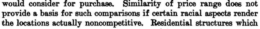 對於種族構成對社區前景的影響,該手冊904節指出,哪怕兩個社區房價近似,也不能斷定兩處社區可比,因為「某些種族因素可能使得社區位置不具有競爭力」。