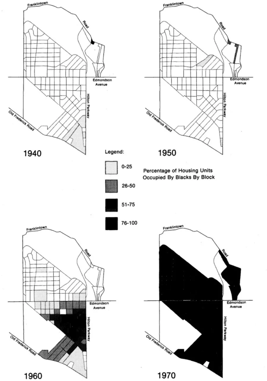 圖為巴爾的摩市埃德蒙森小區1940年-1970年人口構成變化