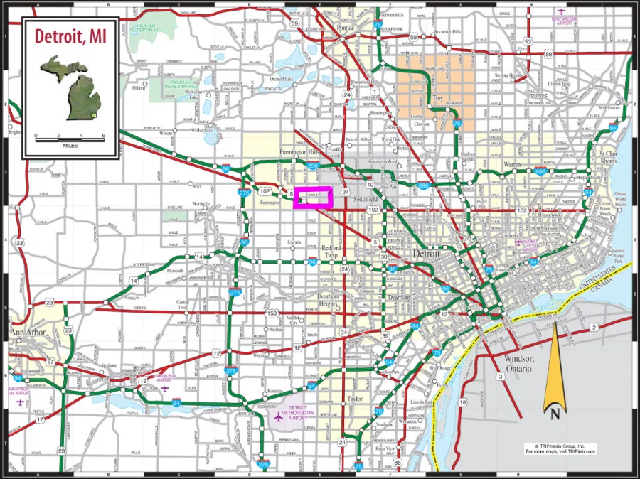 圖為底特律市Farmington郊區位置(紅圈之內)