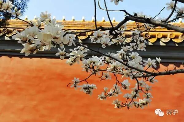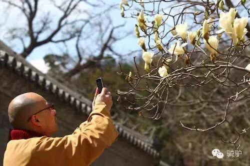 剛勁俊逸,堪稱一絕,古剎內,綻放的玉蘭於紅牆灰瓦間愈顯瑩潔清麗。