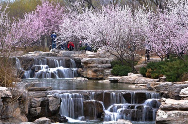 每到花開的4月,40多種桃花競相開放,與黃色的連翹,粉色的榆葉梅,