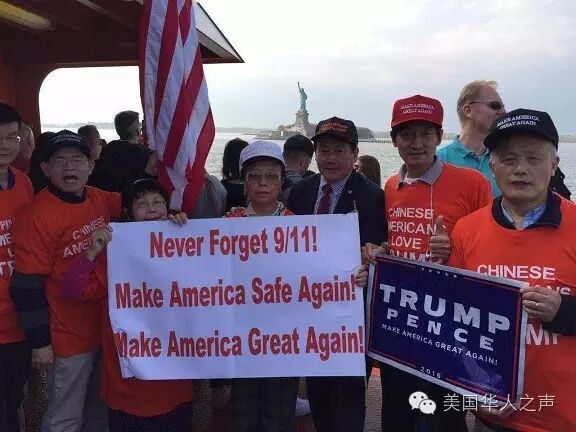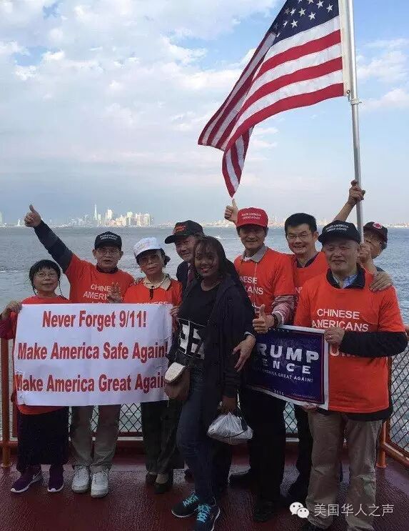 與此同時在哈德遜河上,一架銀色的飛機如鯤鵬展翅,機尾上拖著一幅醒目標語,上面清楚地寫道:NY Chinese American for Trump! 藍天之上、白雲之間、挻川豪情、感天動地!到目前為止美國大約三十個州的上空都出現了支持川普的空中廣告及公路兩旁的電子廣告,而這些廣告的費用都是由支持川普的義工們眾籌集資金支付的!