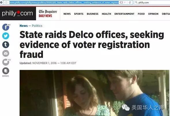 據費城當地最大的資訊網站Philly.com報道,賓州(Pennsylvania)州警10月31日突襲民主黨在Delaware郡的辦公司,此辦公室可能涉及大量註冊投票舞弊。