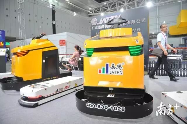 嘉騰機器人注重以人為抓手的品質學,牢牢把控住了人、機、料、法、環五大質量關鍵因素。圖為嘉騰機器人自主研發的移動AGV機器人「大黃蜂」。南方日報記者 戴嘉信 攝