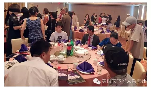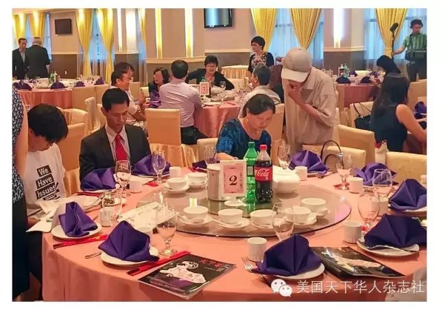 晚會上賓客們在閱讀《天下華人》雜誌。