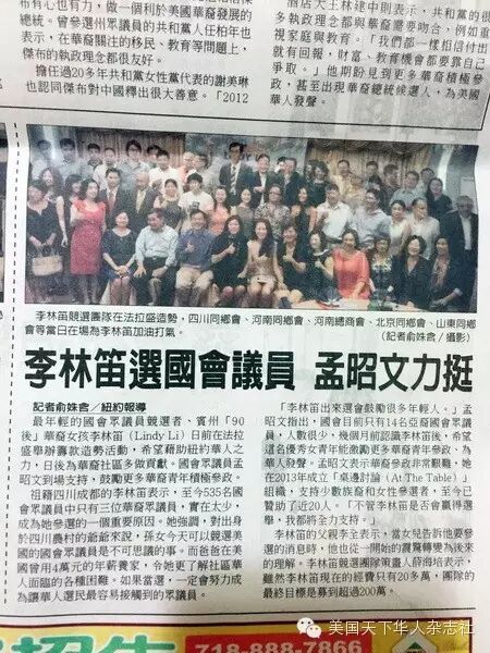 日前,最年輕的國會議員競選者,90后華裔川妹子李林迪在法拉盛舉辦籌款造勢活動,華裔國會議員孟昭文到會聲援,《天下華人》雜誌社更是傾力支持,為其大造聲勢。