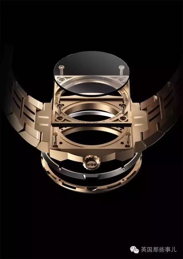 瑞士美度表「大本鐘」限量款腕錶的正方形錶殼背面每個角上的螺絲,都能讓人聯想到這座大本鐘鐘面周圍的四葉草圖案,而通過透明表背可以看到機芯上用來裝飾擺陀的玫瑰窗設計,與大本鐘的錶盤遙相呼應。