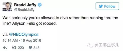 光光光光是根棍:不管怎麼說 她成功鑽了規則的漏洞 並沒有違反任何規則 在那0.01秒做出了這種決定 而且創造了這種神奇的衝刺方式 也許未來後人不會記得這塊金牌 但會一直記得這張特殊的衝刺方式 費利克斯也是一位很優秀的選手 這場比賽會被永遠銘記