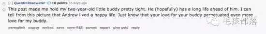 這讓我抱緊了我2歲的孩子。他還有很遠的未來要生活。我在照片里看出來Andrew度過了愉快的一生。你對孩子的愛比我更加深沉。