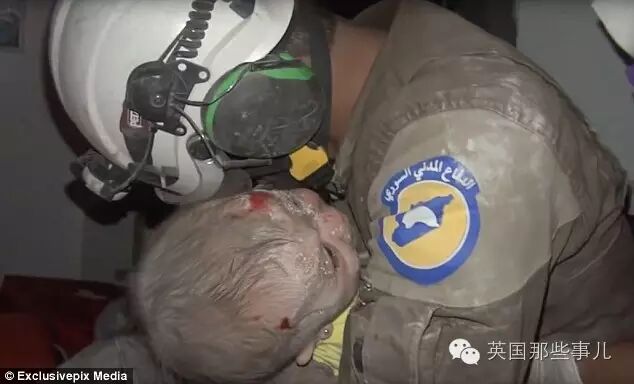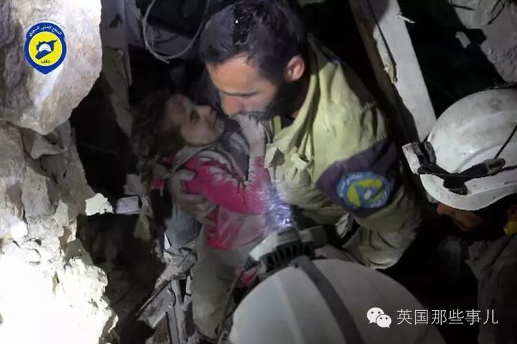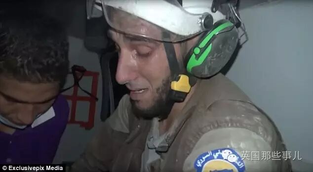 前幾天,一個救援人員在空襲過後的廢墟中挖了2個小時