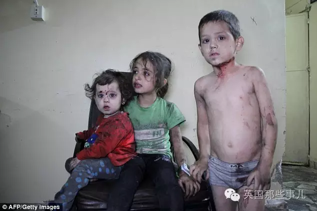 身上沾滿灰塵,血跡斑斑,似乎已經成了敘利亞兒童的常態