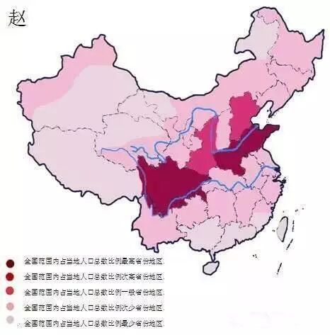 知名人物:宋太祖趙匡胤(音[yìn])趙姓,《百家姓》排名第一,宋朝國姓。趙宋王朝是最具有貴族氣質的漢族王朝,其經濟,文化,科技,藝術的繁榮程度達到了中國封建社會的頂峰,人口數量也超過了一億人。從地圖分佈來看,四川、重慶、河南、山東等地是趙姓的集中地。