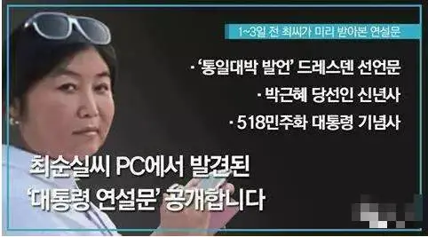從朴槿惠的總統演講稿到記者答問甚至南北韓關係機密文件,本都該直接傳達到總統手中,然而都被傳到這位和政界毫無關聯的崔順實大媽的電腦中,全部都是她用紅字修改的痕迹。除此之外,最近的改憲提案都是這位崔大媽要求的。朴槿惠在重要場合應該穿什麼衣服,挎什麼樣的包都聽從崔順實指揮。現在想來不難理解為何當時朴總統的公共講稿中出現過「吸收宇宙之精華」這種神叨叨的話。記者爆朴槿惠甚至動用私權讓三星等企業「投資」崔大媽建公司(八百億韓幣)。