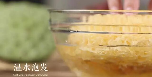 2.銀耳用溫水泡發,水要沒過銀耳。