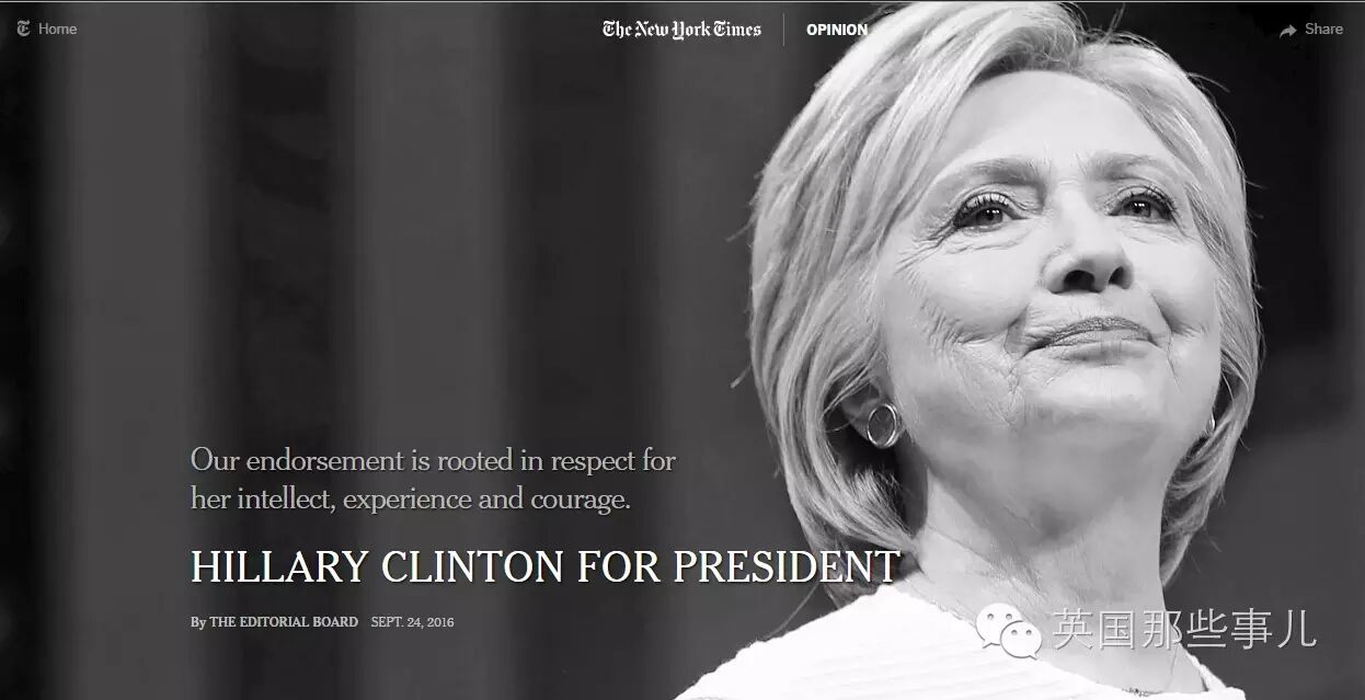 「出於對她的才幹、經驗和勇氣的尊重,我們為她背書:希拉里·柯林頓當總統!」
