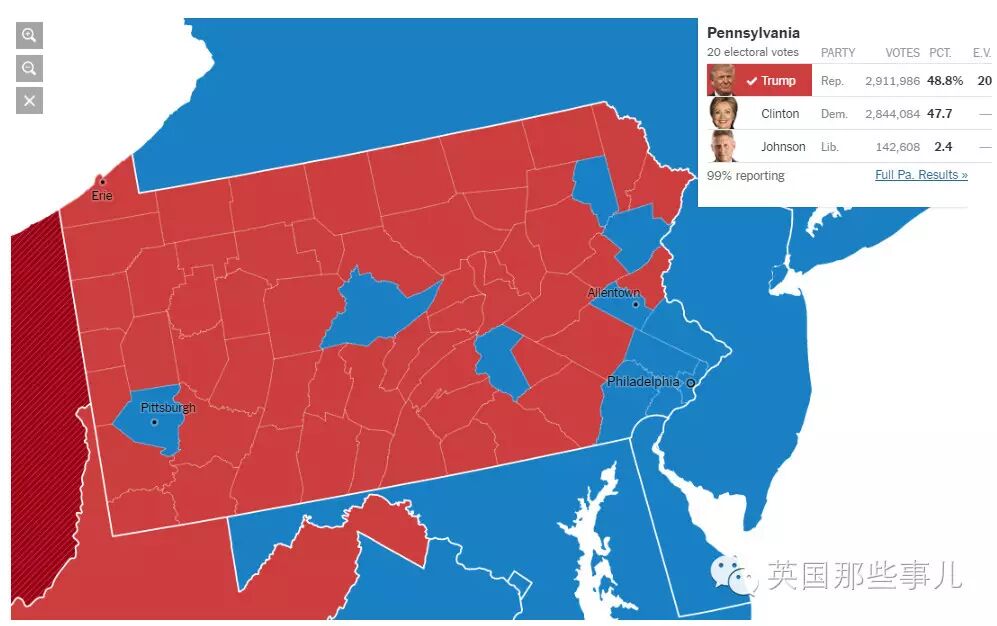 這一次的結果,雖然票數依舊很接近,川普49.1% 希拉里47.7%...