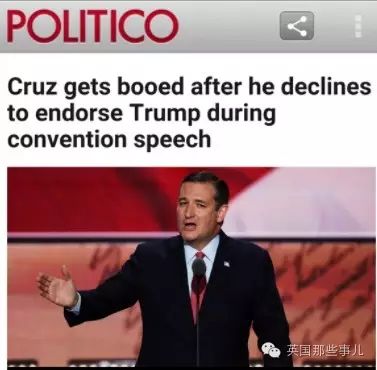 曾經的黨內對手Ted Cruz在共和黨大會上拒絕為他背書
