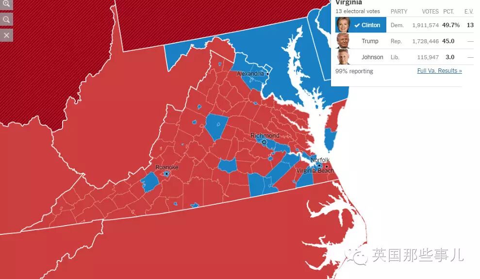 從州來看,雖然是這樣... (紅:川普 藍:希拉里)