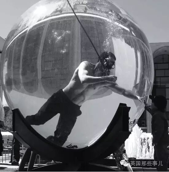 他還曾經把自己關在一個透明箱子中,