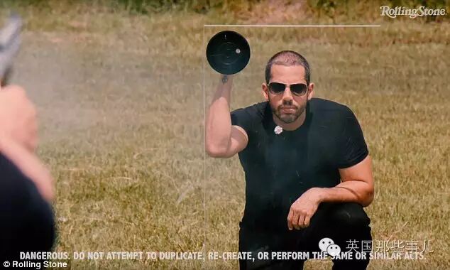 在嘴裡含一個鋼杯,用它來接子彈!稍有差池,子彈射到其他地方,他就一命嗚呼…