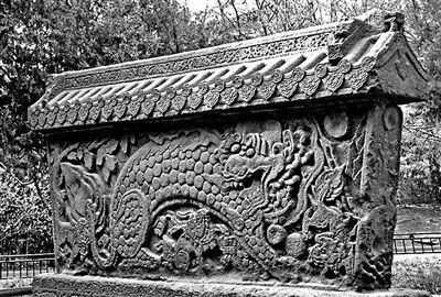 這面鐵影壁的歷史,能夠追溯到元代。這面影壁最早存在元代時期建德門內(今德勝門外土城地區)的一座古剎中,影壁是由中性火成岩石雕刻而成,由於影壁的質地和顏色十分像生鏽的鑄鐵,當時很多人不了解它的材質,故稱其為鐵影壁。壁頂雕成單檐歇山式,上面刻出瓦壠、屋脊。壁面兩側雕刻著雌雄狻猊,狻猊是中國古代神話傳說中龍生九子之一,古書記載是與獅子同類能食虎豹的猛獸,亦是威武百獸率從之意。也是中國古人傳說中一種驅邪的聖獸。將其雕刻在影壁兩側,可以推測其目的是為了驅邪、保護房屋的平安而作。